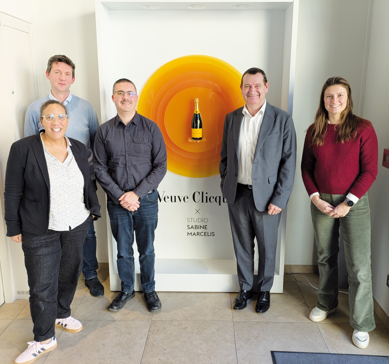 Parmi les partenaires de ce Réseau Vigne Verte (de gauche à droite) : Peggy Sevestre, responsable de la protection des ressources en eau du Grand Reims ; Davide Togni, responsable du service technique viticole chez Veuve Clicquot ; Vincent Loez, responsable gestion et protection de la ressource en eau pour Épernay Agglo Champagne ; Christophe Sacotte, directeur des approvisionnements et relations vignoble chez Veuve Clicquot et Lucie Viard, animatrice viticole. © Thierry Perardelle